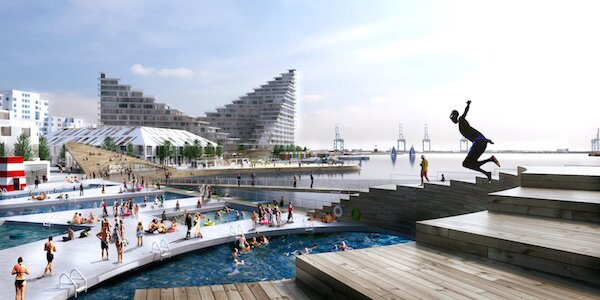 Today mayor Jacob Bundsgaard and Bjarke Ingels from BIG have presented a development plan for the area, Basin 7, at the new waterfront of Aarhus. The area has a fantastic potential as a gathering point for the whole city, and forms the basis of future developments for the whole area.